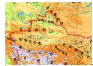 冰輒沉降理論認(rèn)為:山脈的形成并非板塊水平運動的結(jié)果,而是地殼區(qū)域性沉降而造成的相對上升,起決定作用的是重力作用下的地殼區(qū)域性沉降,圖2所示是新疆地形圖圖中明顯可以看出地殼垂直運動的跡象。