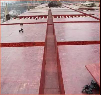 樓板模板:模板支撐體系經(jīng)過嚴格驗算,并履行審批手續(xù),確保支撐體系的剛度、強度及穩(wěn)定性。嚴格控制模板起拱高度,跨度大于或等于4m的梁板按2/1000起拱。跨度8.4m樓板按1.5cm起拱。