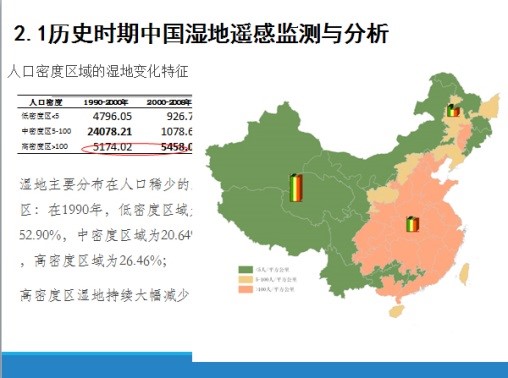 我們工作分兩部分,先是在2012年科學通報發過文章就是中國濕地監測與評價,同時把我們以前做的工作和新的工作匯到一起,一起向各位前輩報告一下。